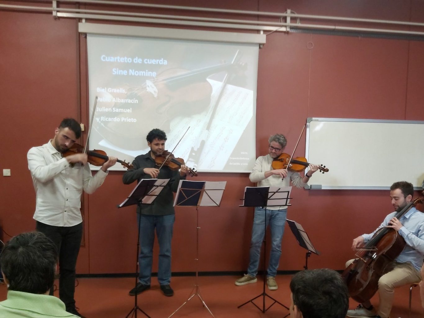 Hoy hemos tenido el privilegio de disfrutar de un concierto solidario en nuestro propio centro, se trata de un Cuarteto de Cuerda llamado Sine Nomine, perteneciente a la orquesta sinfónica de Castilla y León (OSCYL).