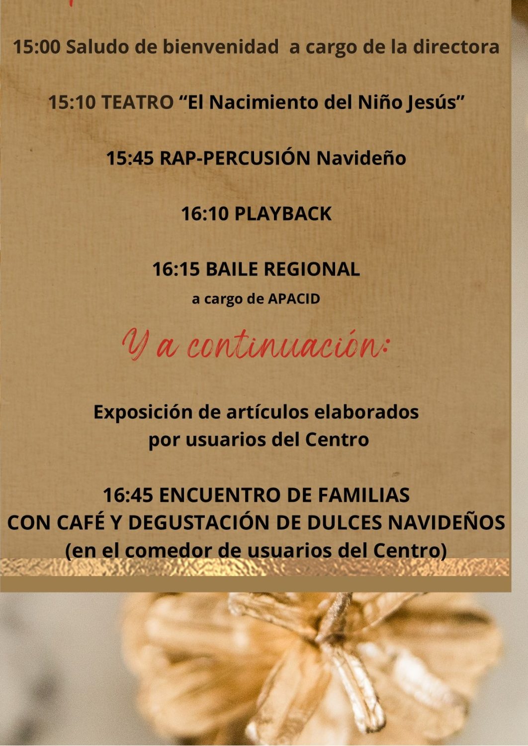 Después, tendremos una comida especial, y por la tarde, baile hasta la hora de salida del centro de Día.